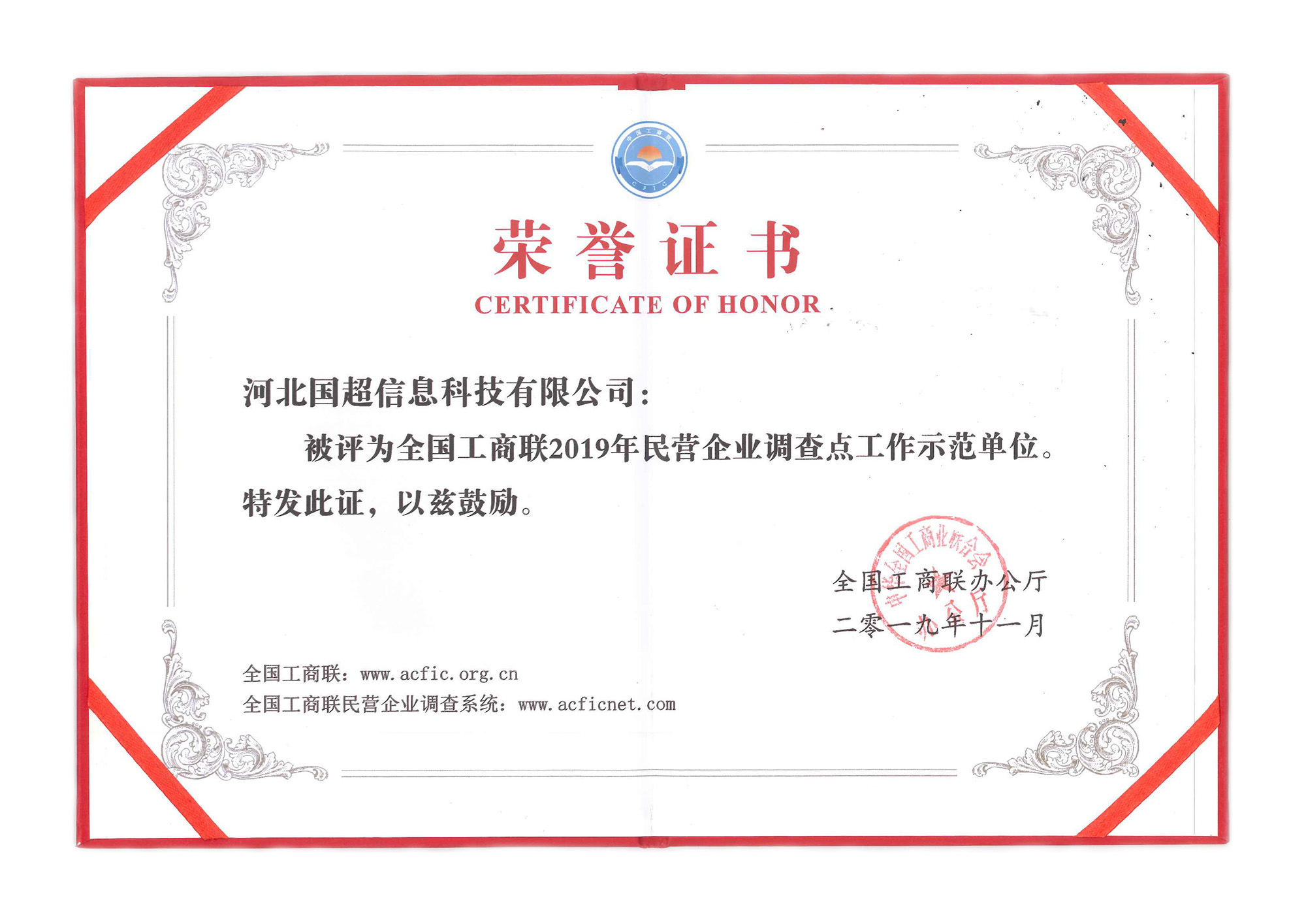 我公司被評(píng)為全國(guó)工商聯(lián)2019年民營(yíng)企業(yè)調(diào)查點(diǎn)工作示范單位