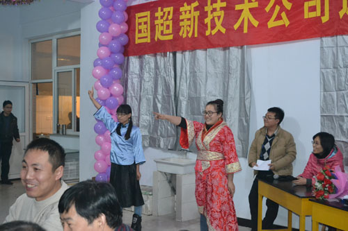 | 2013年12月27日晚,我公司一樓大廳燈光璀璨,笑語滿堂,2014年元旦聯(lián)歡晚會在這里隆重舉行。我公司董事長兼董事長劉占查攜全體員工以及有關(guān)公司領(lǐng)導(dǎo)歡聚一堂,喜迎元旦迎新年。 晚會在熱烈、激情的歌曲《國超之歌》中拉開帷幕。晚會有猜謎游戲、中外文歌曲、音樂劇、抽獎等節(jié)目,展現(xiàn)了國超人的青春活力和對公司的熱愛之情。晚會時代氣息鮮明,企業(yè)文化特色濃郁,多角度,多視點的營造出昂揚振奮、歡樂祥和的節(jié)日氣氛。本次晚會的節(jié)目都是公司員工自編、自導(dǎo)、自演的,迎得了大家的一致好評,員工們的精彩表演贏得滿場陣陣熱烈掌聲;厥走^去,我們銳意進取,不斷求索;展望未來,我們勇往直前,再創(chuàng)輝煌。在新的一年里,國超公司必將繼往開來、與時俱進,創(chuàng)造更加燦爛輝煌的明天。